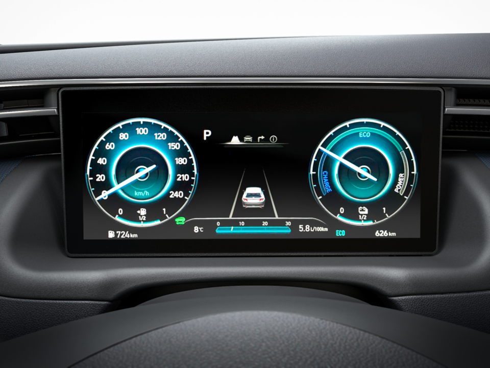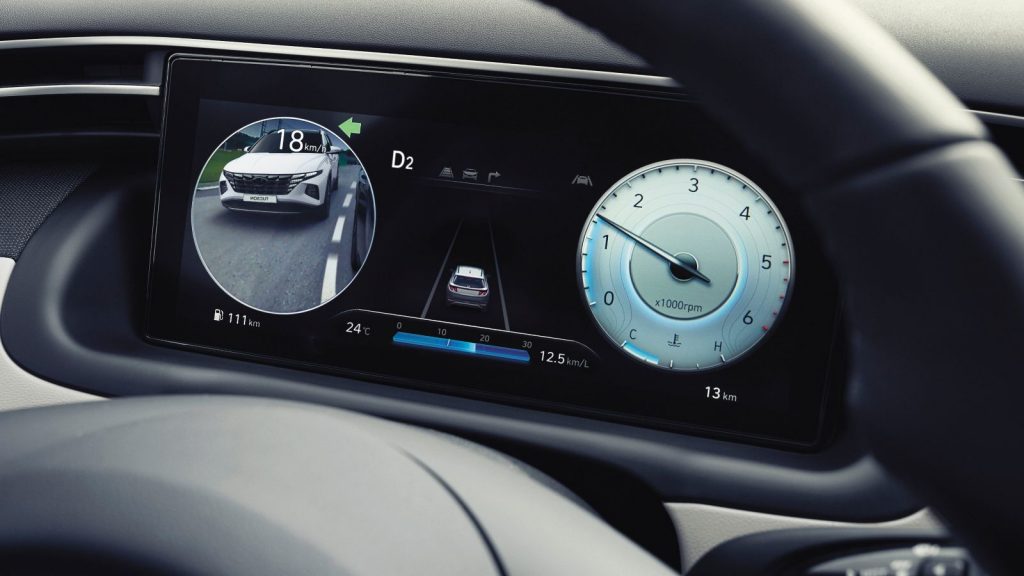 Sada na zaslonu unutar digitalne instrumentne ploče možete vidjeti stražnji lijevi i desni bočni prikaz TUCSON Plug-in Hybrida. Kamere se aktiviraju uključenjem pokazivača smjera prilikom promjene prometnog traka.