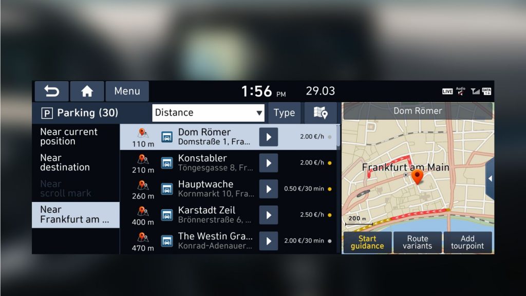 Ova vam značajka pomaže pronaći i usporediti mogućnosti parkiranja u garažama i na parkiralištima, kao i na parkirnim mjestima na ulici.