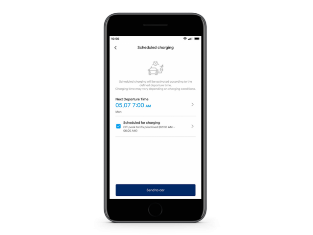 Uštedite novac u nekoliko koraka. Upotrijebite funkciju Rezervacija vremena punjenja za programiranje pokretanja i zaustavljanja punjenja kako biste iskoristili najniže cijene električne energije i probudili se s potpuno napunjenom baterijom.